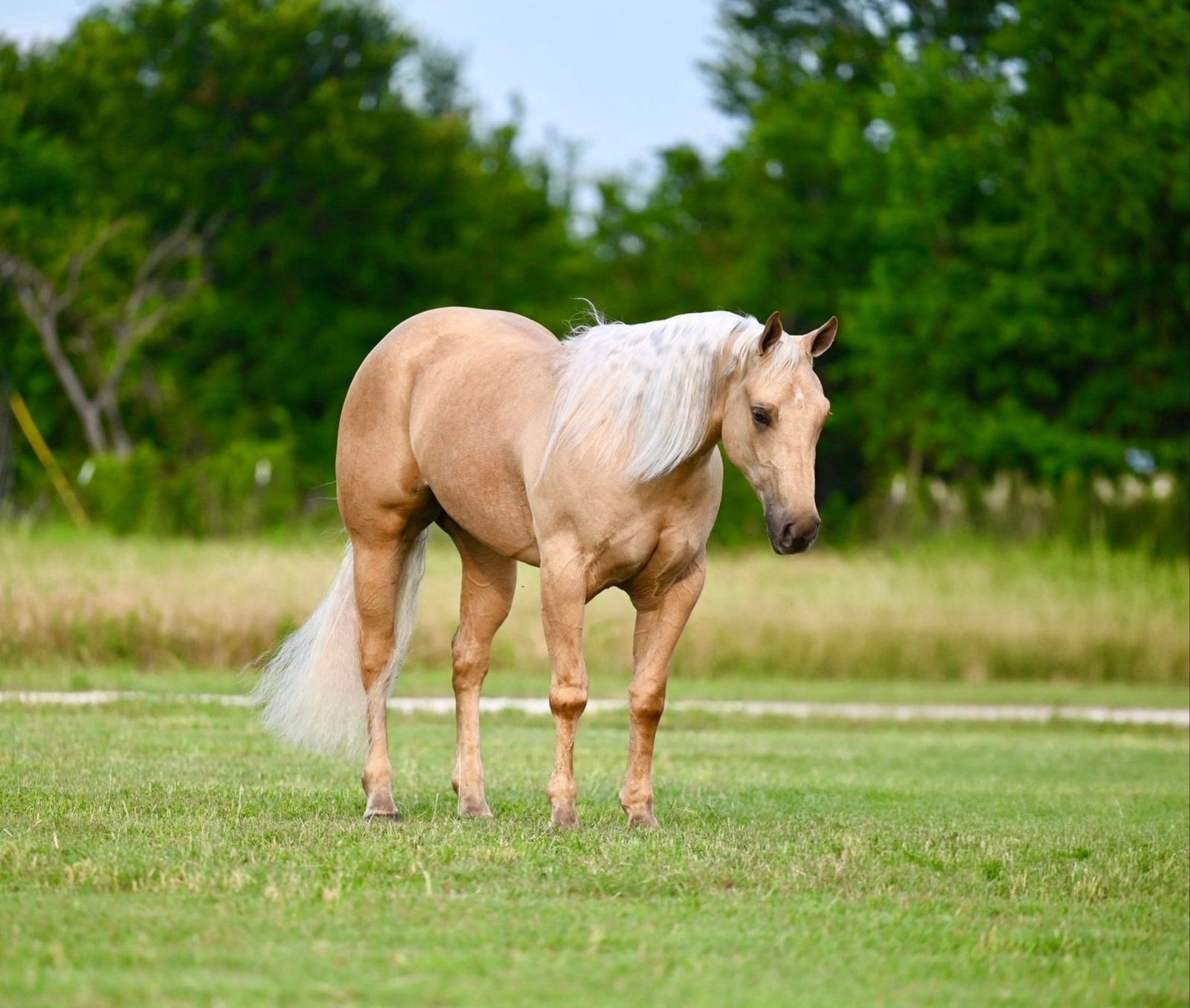 Barbie is an attractive made palomino mare that is sired by Whizkey N Diamonds. She is a HUGE Stopper, has big turns and picture perfect lead departures. This mare has a heart of gold and is the first to greet you in the barn everyday. Barbie is Riata Buckle Eligible and has been pen roped on. This Is one Fancy mare that can continue her reining career or can transition into a heel/breakaway horse over night. Please call Nate Ballerino at 254-716-9588 with any questions. National Wide Shipping can be arranged.