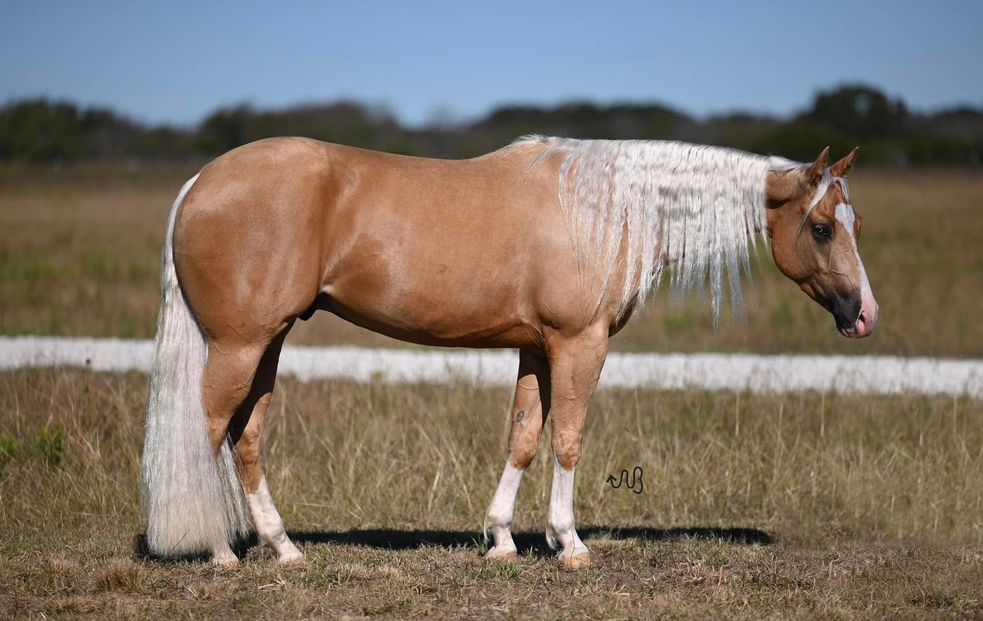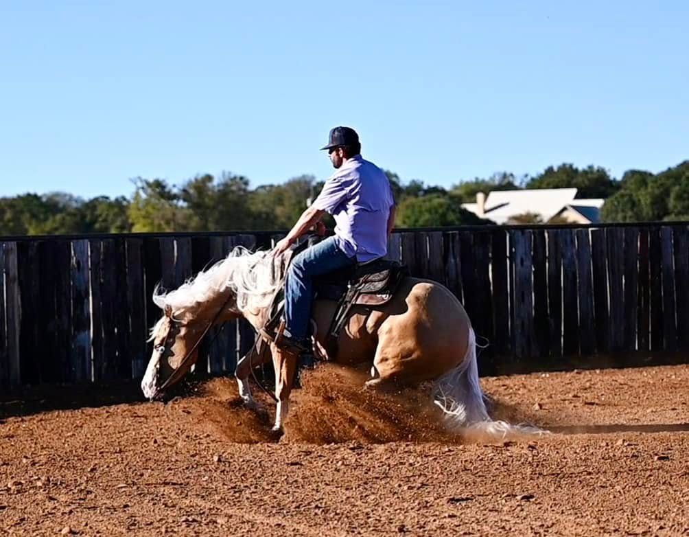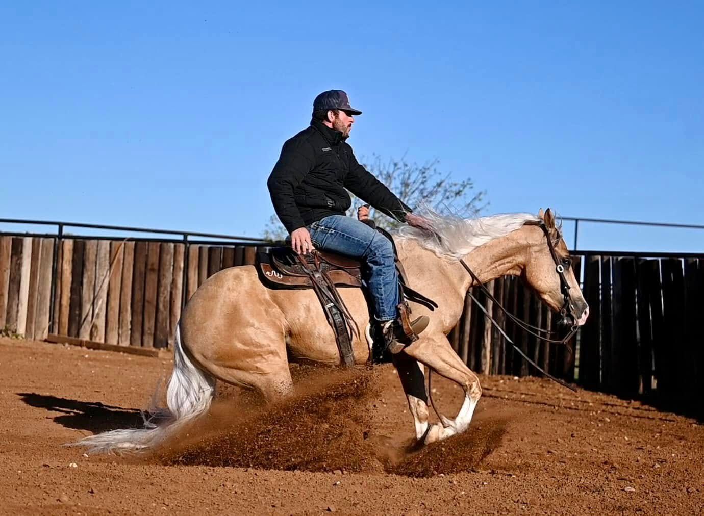 Lc Pale Rider aka Golddigger is a 2021 15 hand Palomino gelding by the great PaleFace Dunnit. Golddigger has spent his time in a reining program and is ready to excel in someone’s program . He has been pen roped on, used outside and stays gentle and broke. Golddigger is a fancy looking gelding with a bright future.