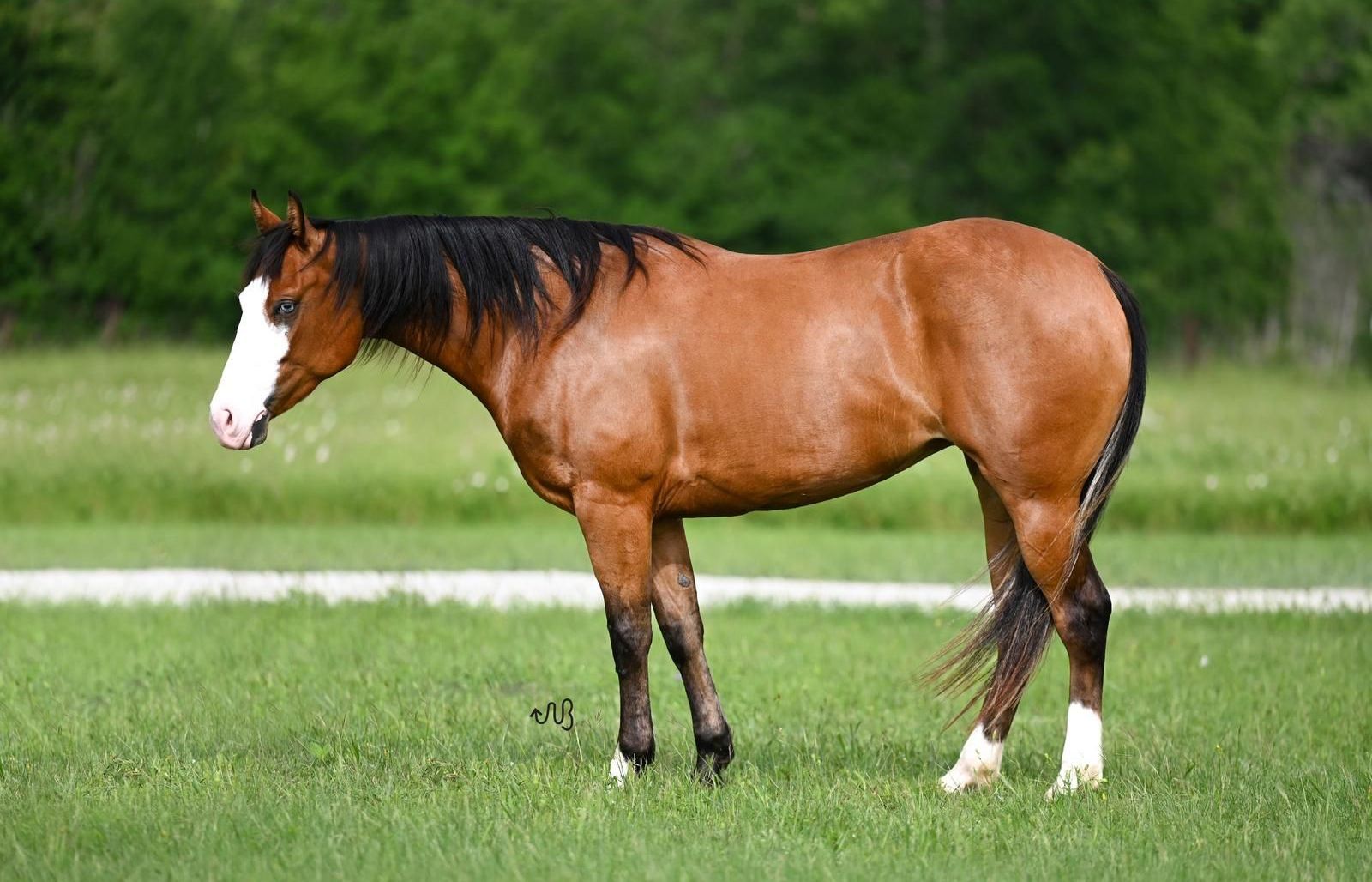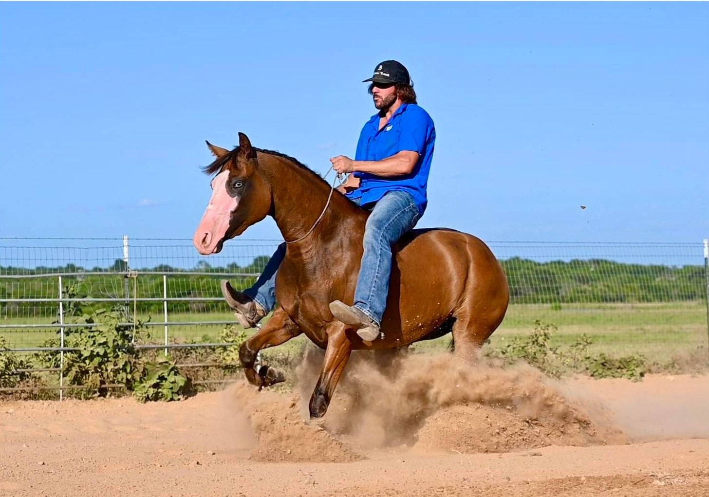 Thirty Eight Caliber aka June Bug is a Bald face, Blue eyed beauty that is double registered with the AQHA and APHA. June Bug is by Snipers Smoking Gun and is a super talented and attractive filly. She Stands right at 14.2 hands tall and for just being 3 years old has seen lots of life and is incredibly talented and trainable. She takes both her leads with a classy little lead departure has a huge sliding stop, Spins both ways, stays soft, supple and has an incredible attitude about anything new. She is a big time prospect for just about any discipline you choose. She is lightly started on the calf sled and took right too it. I feel June Bug would excel as a Reiner, Reined cow horse or would make an excellent Breakaway or calf horse over night. She has been one of the favorites in our program and we would love to keep her in training.