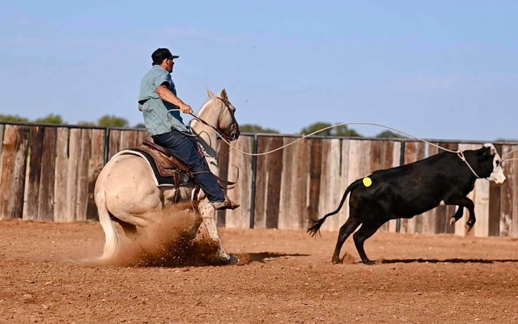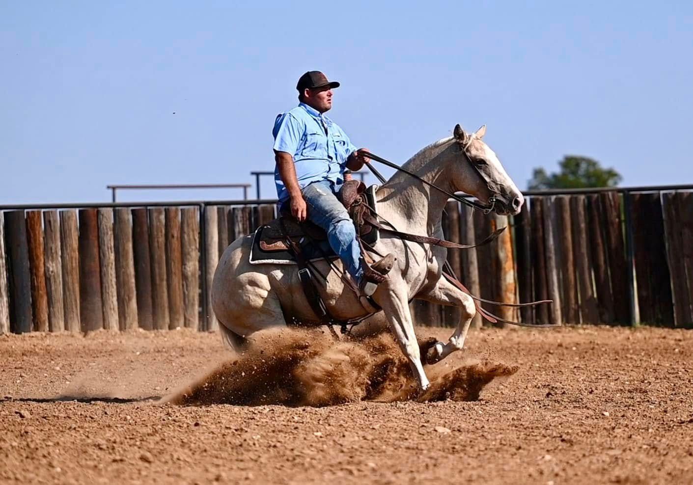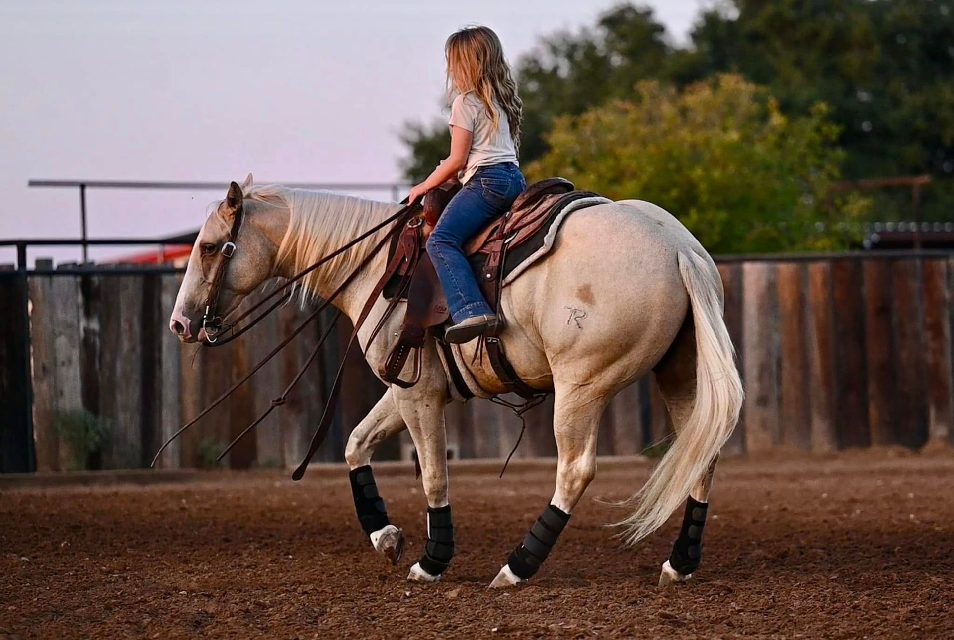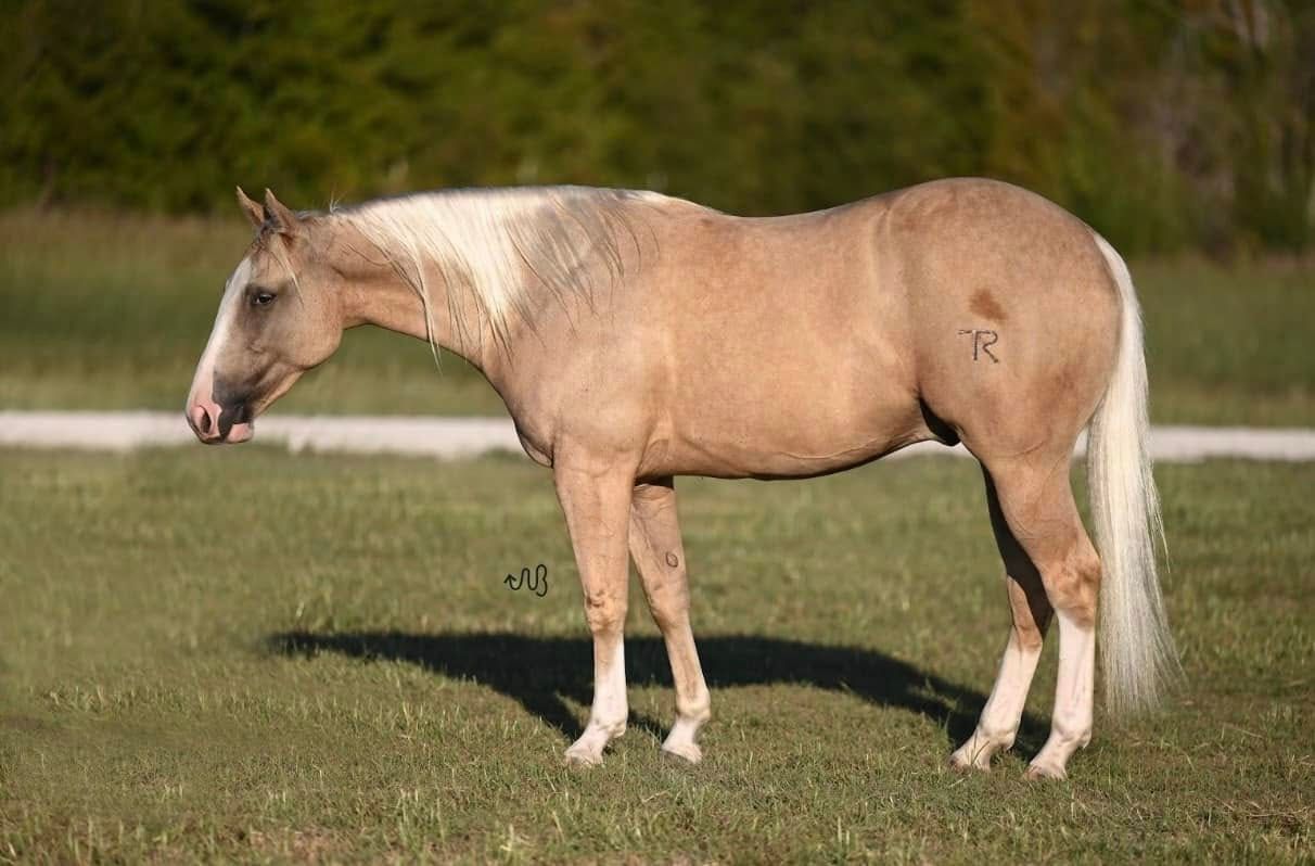 Tr on A Mission aka Marshmallow is one cool dude. This 2022 Palomino gelding has the looks, brains and natural talent you can’t train into one. Marshmallow does all the maneuvers flawlessly and always leaves us impressed. He takes both his leads, has cool 1 handed spins and HUGE sliding stops. Marshmallow has been pen roped on and started on the calf sled. He is Big time Heel/Calf horse prospect and has the motor to back it. Stands 14.2 hands and is built to last.