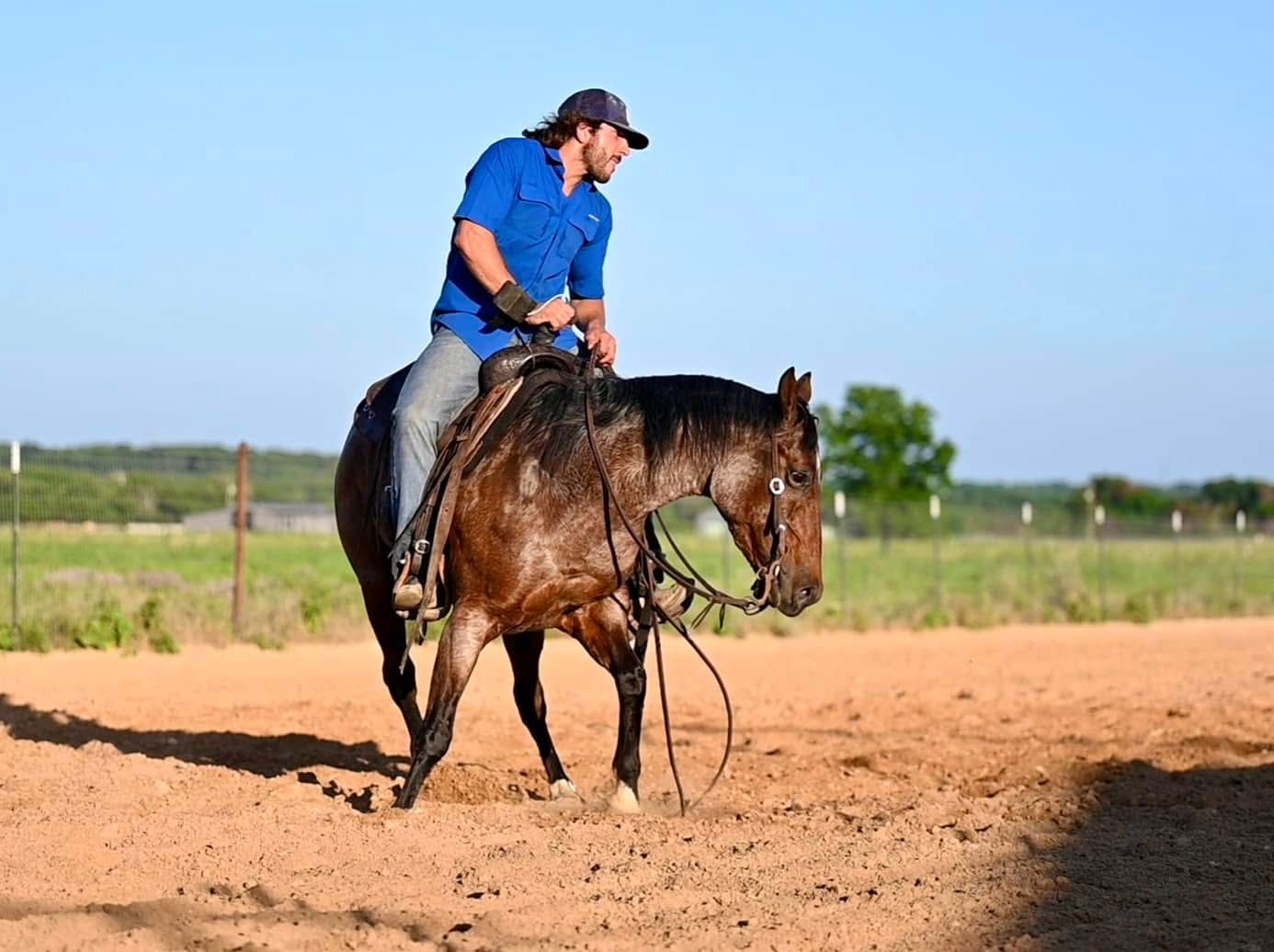 He is a 14.1, 5 year old own son of THE great Metallic Cat who has a LTE of $637,711 and produced in excess of 68 million. This is the perfect horse for the Riata Buckle and Gold Buckle roping events. Drop your hand on Miami and he will eat a cow up, has classy 1 handed spins, short Lopes right off and has a huge sliding stop. I have lightly started him on the calf dummy and he is taking right to it. Miami has great bone, a broad chest and the perfect demeanor. This guy is everything you could ask for and is wrapped up in a stunning bay roan coat. Miami has a cutting background and has all the tools that will set him up to be a superstar for his next owner. If you are in search of a horse that is enjoyable to be around, with looks and athleticism too you need to have Miami. He checks all the boxes: Stands quietly at the trailer, great for the farrier, loads/unloads easily, wants to be caught, enjoys people, respects personal space, does not get hot, the list goes on. He is ready for the next ride whenever you are.
