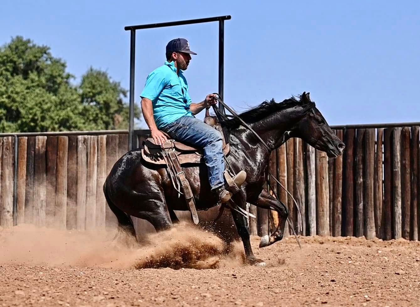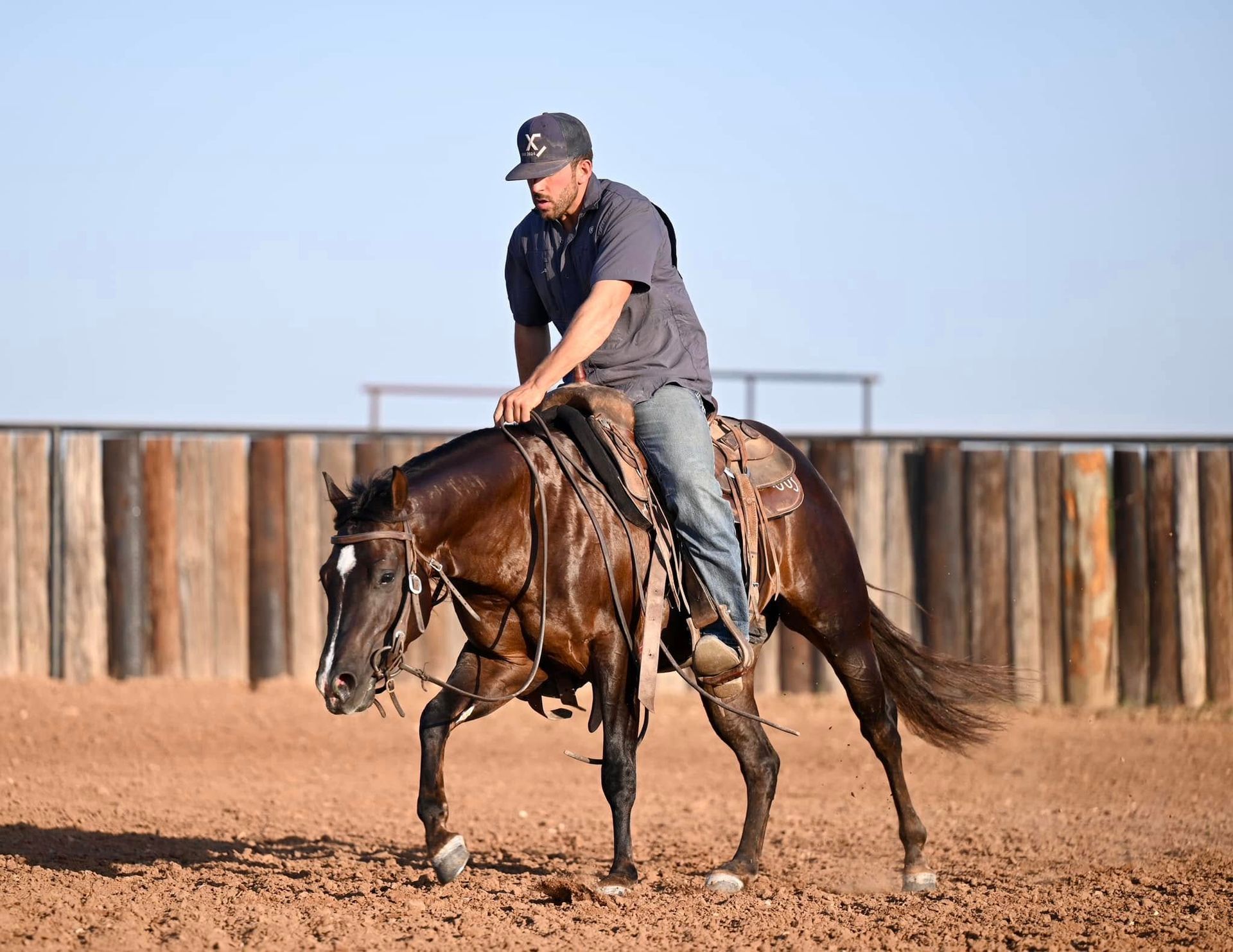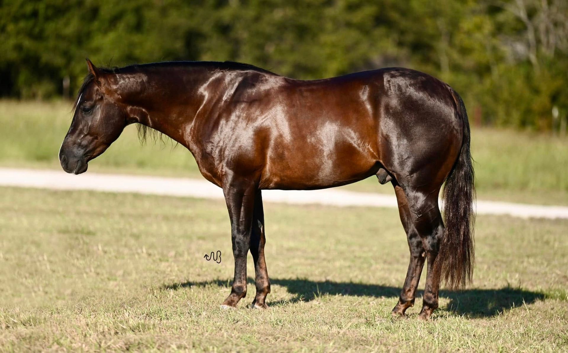 Peanut is a 2021 dappled seal Brown Gelding that has stolen the show at our barn and is an absolute favorite. He has all the talent and ability you could ask for. This quick footed gelding stands 13.3 and is by Dun it for Whiskey who earned in excess of 269k. Peanut has spent over a Year in a reining program and has mastered all the moves. He is a huge turner and slides every-time he is asked. Peanut has the classiest lead departures and breath taking circles. While peanut will excel in any program we whole heartedly believe he will be an absolute stand out as a breakaway horse. We have roped the dummy and pen roped on him and he took right to it.