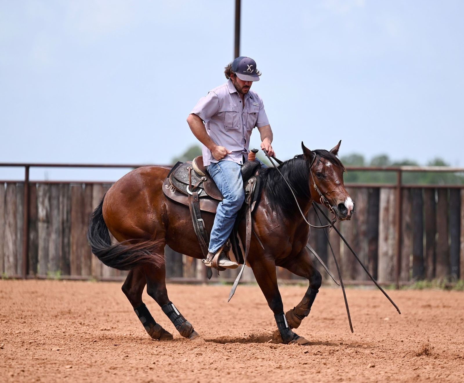 Heza Big Dill aka Pickles is a hand made Gelding by Tinker With Dreams who won over 396 k in the NRHA. Pickle is has spent some time in a reining program. He takes both his leads has a sliding stop, Spins both ways, stays soft, supple and has an incredible attitude about anything new. This is a good minded colt that always stays gentle. He is lightly started on the calf sled and has been pen roped on. Pickles is Riata Buckle Eligible.