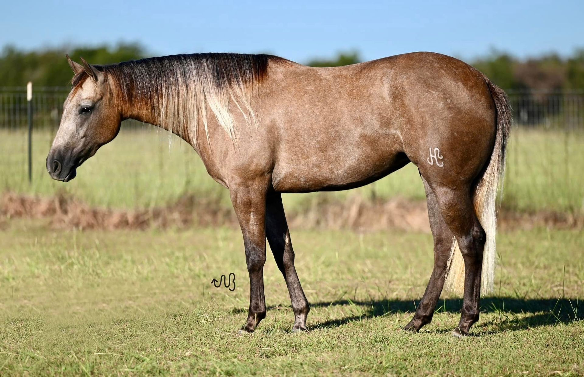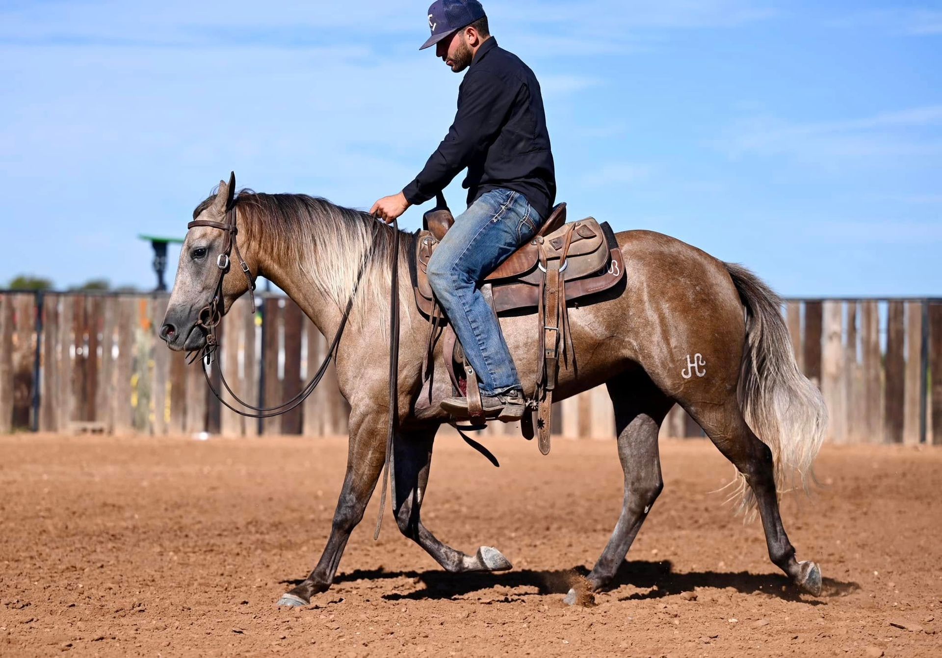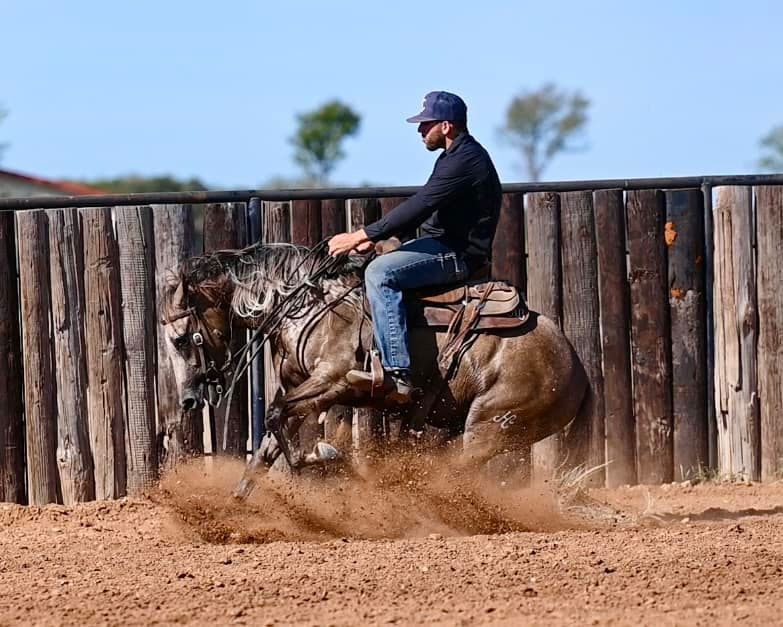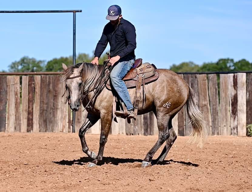 Platinum Rye aka Platinum is a 2022 filly by Dun it for Whiskey who earned in excess of 269k. Platinum has spent time in a reining program and has all the tools to excel in life. She takes both her leads, Steps around each way and has a sliding stop. Platinum is lightly started on the calf sled.