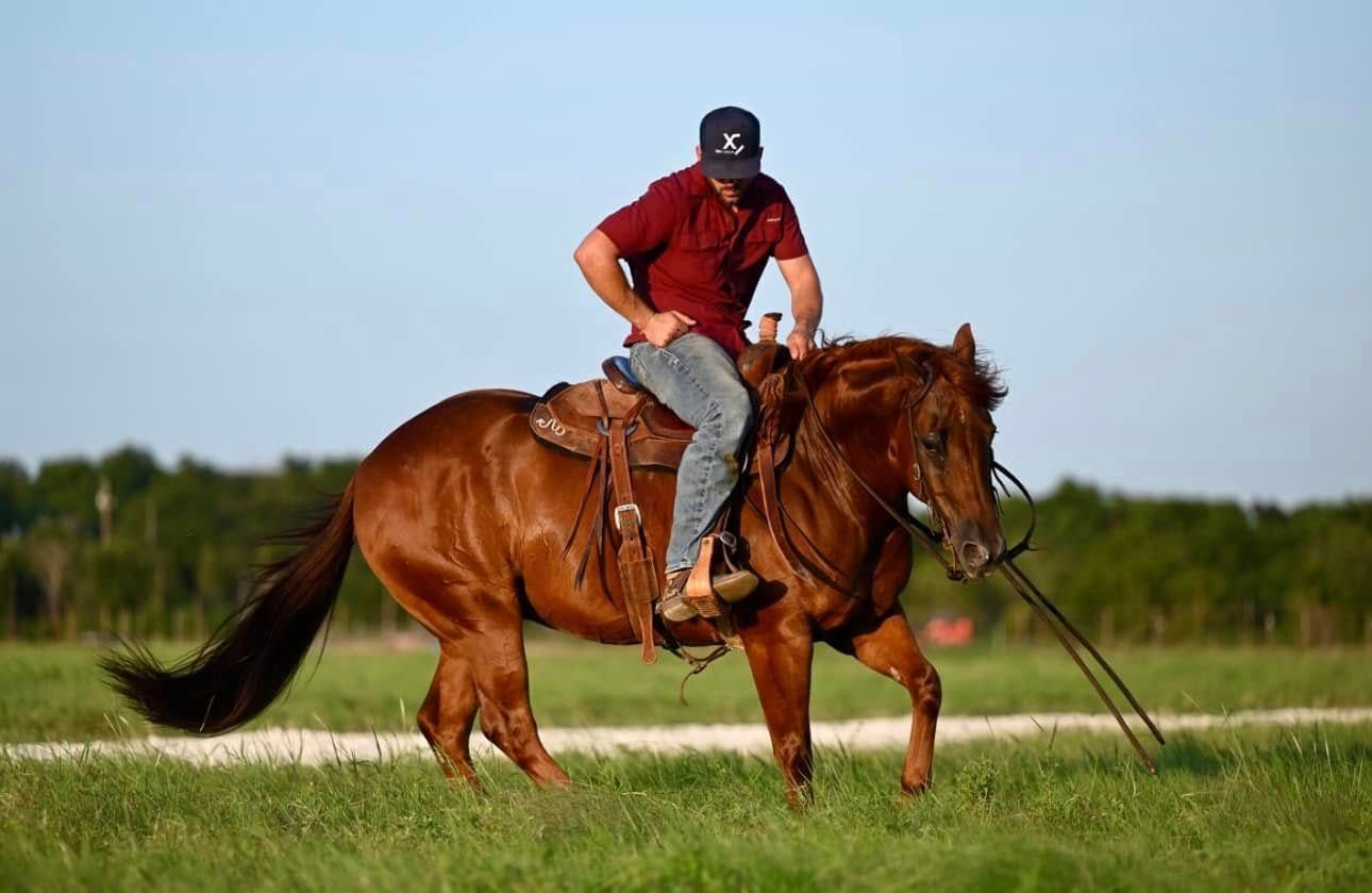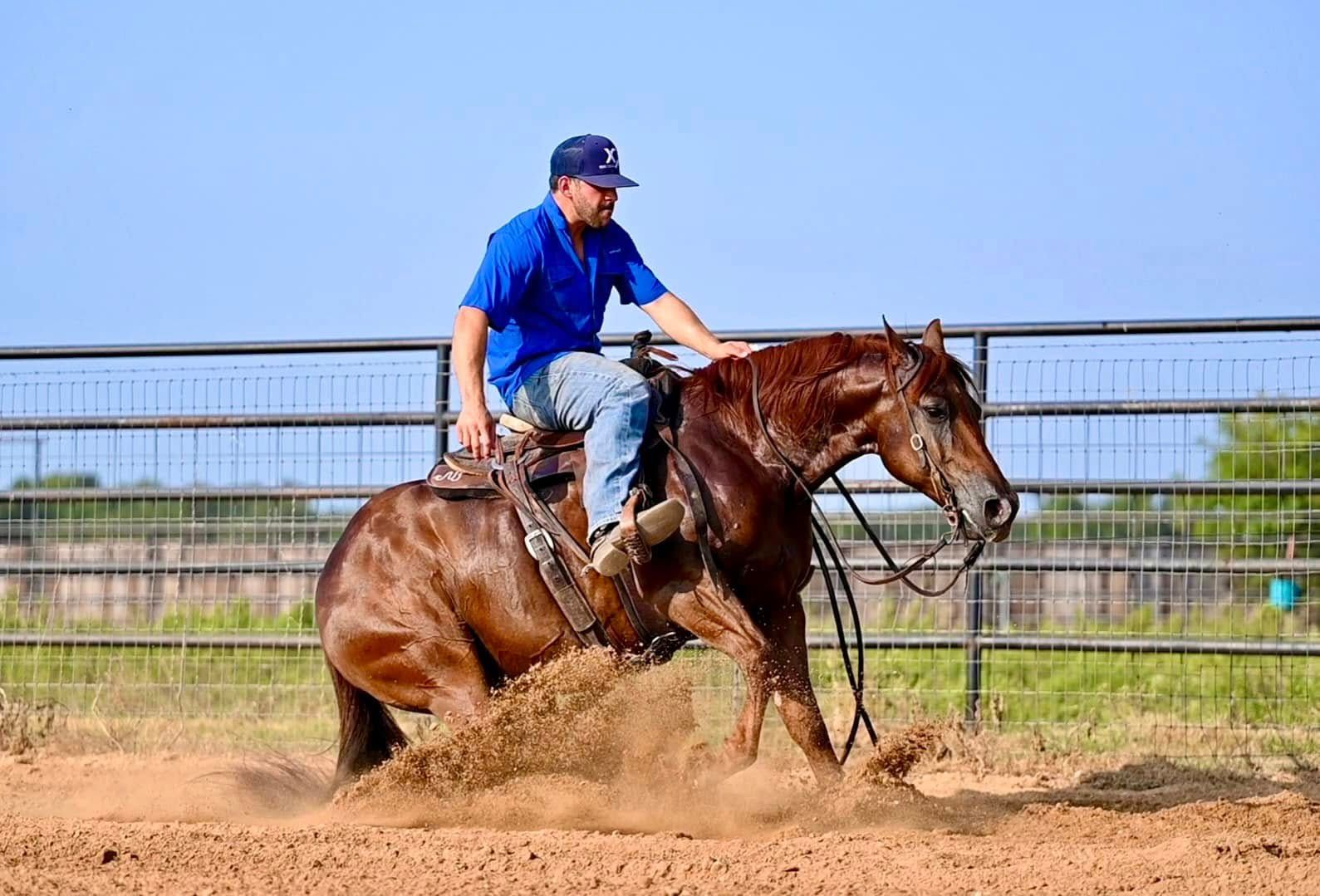 Hickory Boonstyle aka Scooter has been one of my personal horses for over a year. He is an absolute athlete and has the brains, ability and looks to back it. Scooter is quick on his feet, stays between the bridal reins and has the best handle you could ask for. Hes had hundreds roped in him outside and is lightly started on calves in the arena. This gelding is one of my favorites.