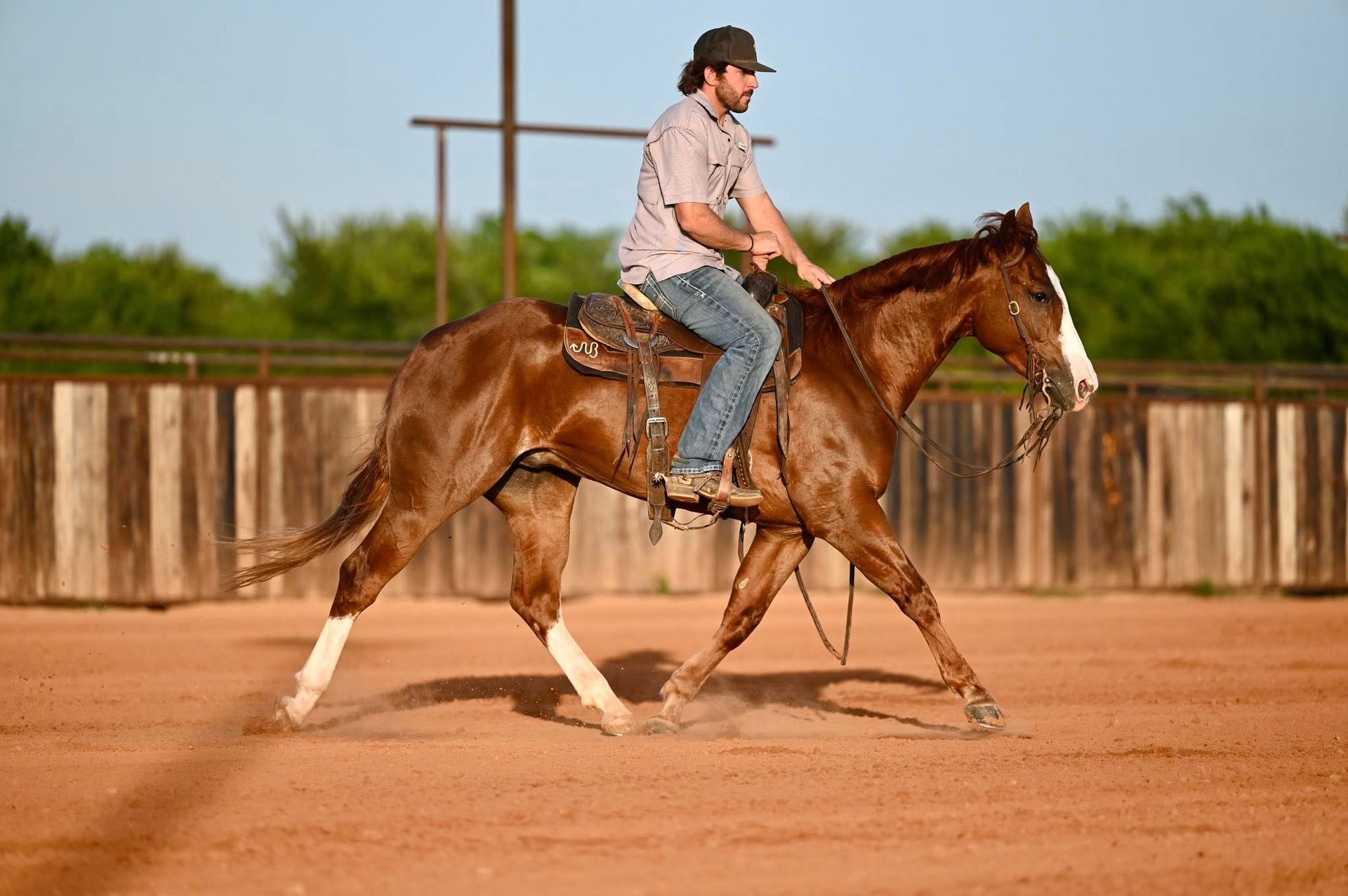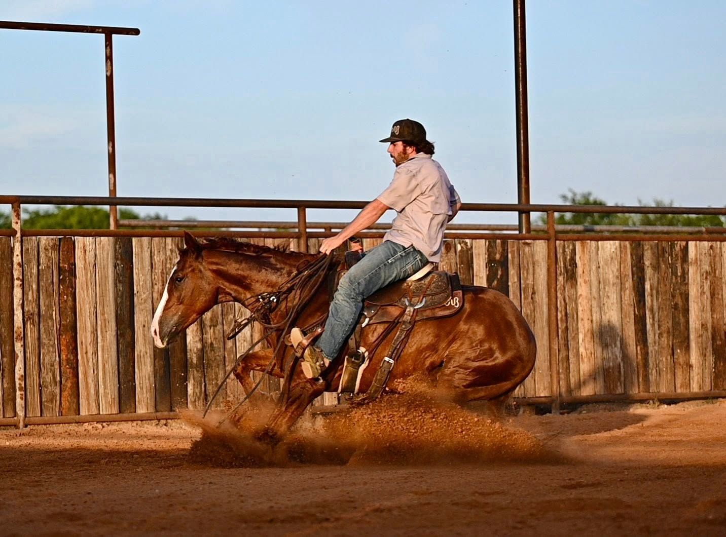 Catty Rez “Bentley” is a gorgeous 4 year old gelding by Catty Hawk who won over 235k and has produced in excess of 3.8 Million. Bentley is a special gelding that shows a lot of natural talent and style. He’s incredibly eager to please, stays soft, super trainable and has the heart and athleticism to back it. Bentley spent 14 months in a cutting program and is extremely expressive and confident on a cow. He takes both leads, has correct spin’s and a deep sliding stop. Walks out on a loose rein, has a soft steady trot and a pleasant lope. Bentley has been pen roped on and will confidently excel in all the Rope Horse events. He is Eligible for the Riata Buckle, Gold Buckle and Royal Crown Futurities.